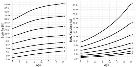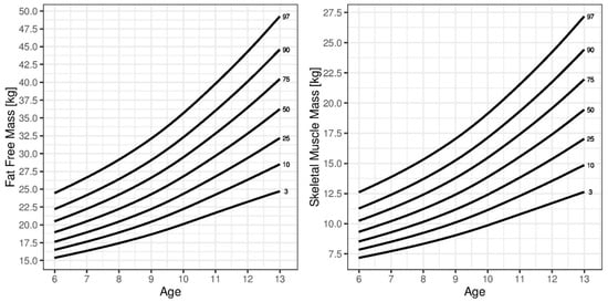 Therefore, this study aimed to create age- and sex-specific skeletal muscle mass (SMM), body fat mass (BFM), percent body fat (%BF), and fat-free mass (FFM) percentile curves in Czech children 6–11 years of age.