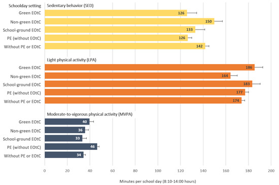 Descriptive statistics (see Table 1) show that the time spent in LPA was lower in all school day settings (range −6.08% to −0.59%) compared with school days with green EOtC.