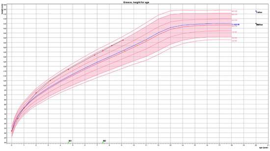 For a child to be considered as presenting the growth pattern of CAG, his/her Height Standard Deviation Score (SDS) should be ≥1.5 than Target Height (TH) SDS and other conditions that lead to early growth acceleration, such as genetic tall stature, overfeeding, and intrauterine growth restraint have to be excluded. In the case of a typical girl, the growth pattern of CAG is depicted in Figure 1.