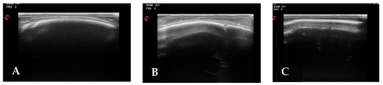 Suture US: (A) Patent right coronal; (B) Patent right lambdoid; (C) Synostotic sagital.