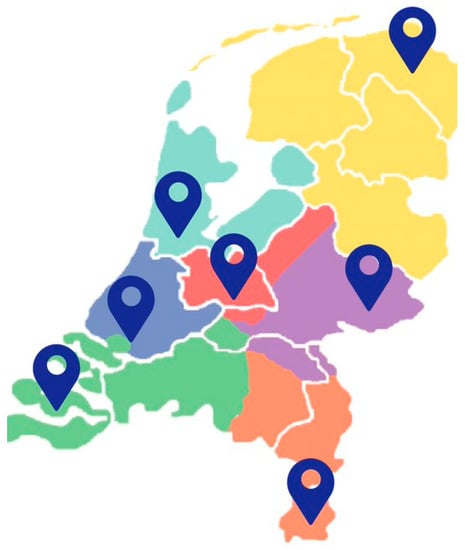 Map of the Netherlands with the seven areas of the nationwide structure CPC.
