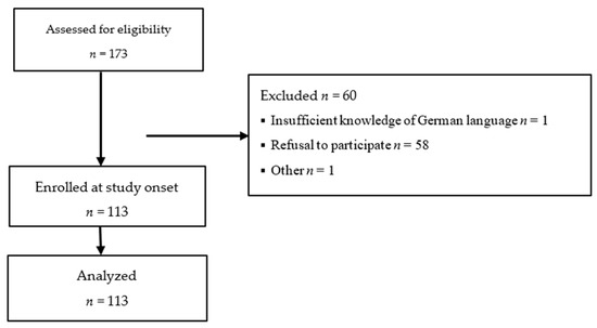 All parents of patients aged 0–18 years followed in our liver unit between September 2019 and February 2020 for advanced chronic liver disease, or after liver transplantation were deemed eligible for study inclusion. Figure 1 summarizes the enrolment process. Only one parent per patient was included. Exclusion criteria were the lack of an ability to understand the German language on the part of the parents/caregivers, missing informed consent, or failure to complete the questionnaires. 113 parents/caregivers of 113 patients (68 girls, 45 boys) aged 6 months to 18 years (median 8.7 years) with chronic liver disease (n = 25) or after liver transplantation (pLTx) (n = 88) completed questionnaires. Participants’ demographic data are given in Table 1. A subset of 16 parents/caregivers participated in focused interviews.
