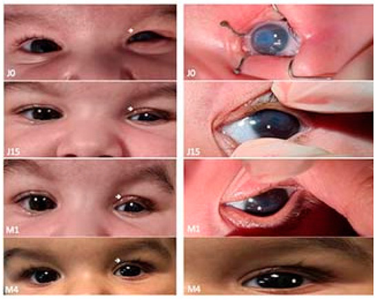 The prognosis of the patients is very good in the case of early diagnosis and treatment, and irreversible corneal damage is thus avoided [1,2,6]. In this case, despite a relatively late intervention, after the installation of corneal damage, the result was very good, and we will continue to monitor the evolution of the patient’s visual acuity and refraction as they grow.
