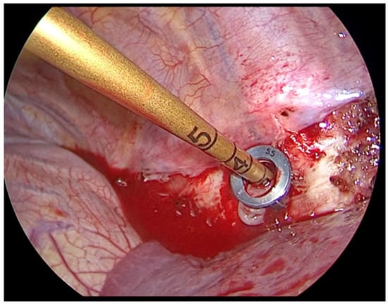 External braces for early disease or spinal fusion surgery are the conventionally proposed technique for the treatment of idiopathic scoliosis in childhood [11]. Good results of spinal fusion are reported in terms of curve correction, although the reduced motility of the spine leads to a limitation of the growth of the processed segments [4,5,6]. Possible degeneration of adjacent segments is reported as the most redoubtable risk of this technique. The technique of vertebral body tethering was designed to avoid these disadvantages. Although other recently described techniques seem promising in the management of IS, such as traditional growing rods or magnetically controlled growing rods, which are designed for the growing body and allow the correction to be modulated even in an outpatient setting, there are still many aspects that have to be adequately investigated and further studies are needed [8,9]. Minimally invasive surgery (MIS) continues to grow in popularity in all fields of pediatric surgery, including in the treatment of vertebral spine. VBT creates a relative correction of the curve giving a compression on the convexity of the column and a distraction on the concave side [15]. The curves gradually decrease, in accordance with the “Hueter–Volkmann law” [16]. In patients with residual skeletal immaturity, improvement of the defect derives from the possibility of developing the epiphyseal growth nucleus. This is why the ideal patient who can benefit from the fusionless technique as an alternative of spinal surgery is the pre-adolescent child. Thoracoscopic approach has demonstrated improved perioperative outcomes, decreased pain, and all benefits in term of morbidity, hospital stay and cosmetic results. This approach is becoming increasingly common, due to the well-known benefits of VATS, including a dramatic advance in visualization with magnified images. Although its critical weaknesses due to the two-dimensional visualization along with restricted maneuverability, VATS procedure for VBT allows a multidisciplinary access to the spine and the close collaboration between pediatric thoracic surgeon and orthopedic surgeon makes this procedure safe and feasible.