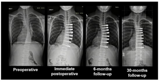 - Bonsignore-Opp, L.; Murphy, J.; Skaggs, D.; Cahill, P.; Blakemore, L.; Parent, S.; Samdani, A.; St. Hilaire, T.; Vitale, M. Growth modulation for childhood scoliosis: Where have we come from and where are we going? JPOSNA 2019, 1, 1–8. [Google Scholar]
