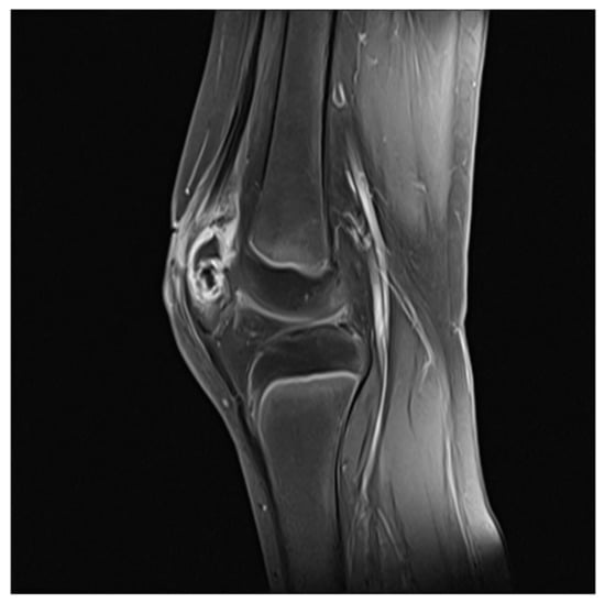 - Sperl, M.; Novak, M.; Sperl, D.; Svehlik, M.; Singer, G.; Kraus, T. Osteomyelitis of the Patella in a 10-Year-Old Girl: A Case Report and Review of the Literature. Case Rep. Orthop. 2017, 6573271. [Google Scholar] [CrossRef] [PubMed] [Green Version]