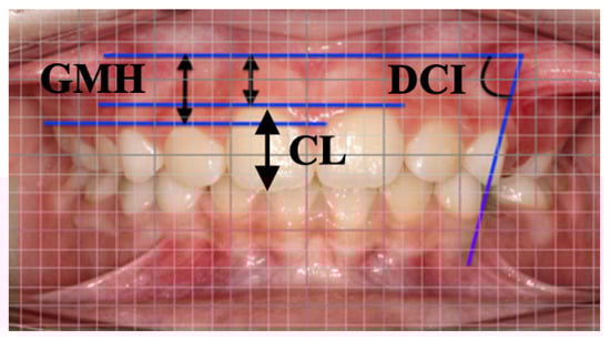 - Gingival margin height (GMH), perpendicular distance between mucogingival line and apical point of the gingival margin;