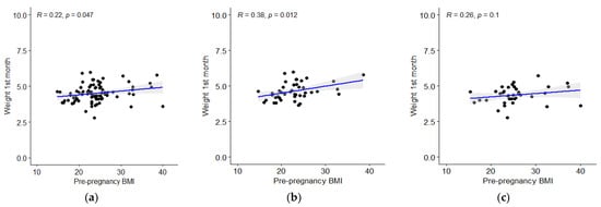 APA StyleŁoniewska, B., Michalczyk, K., Podsiadło, K., Adamek, K., Michalczyk, B., Tousty, P., Kaczmarczyk, M., & Łoniewski, I. (2022). Analysis of the Influence of Pre-Pregnancy BMI and Weight Gain during Pregnancy on the Weight of Healthy Children during the First 2 Years of Life: A Prospective Study. Children, 9(10), 1431. https://doi.org/10.3390/children9101431