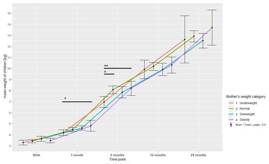 Analysis of the Influence of Pre-Pregnancy BMI and Weight Gain during Pregnancy on the Weight of Healthy Children during the First 2 Years of Life: A Prospective Study