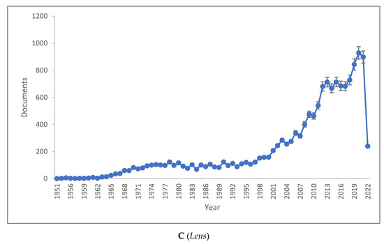 The data were retrieved using Scopus, WOS, and Lens. These databases were included for a variety of reasons. WOS and Scopus initially cover only publications that match their criteria [46,47,48]. In addition, Lens includes more data than both Scopus and WOS [49]. In other words, while both Scopus and WOS only listed publications that are included in their indexed journals, Lens includes more data beyond these two databases. Although Google Scholar might have more data than Lens, it is not as systematic as Lens, and data retrieval for large sets of data from Google Scholar is smooth.