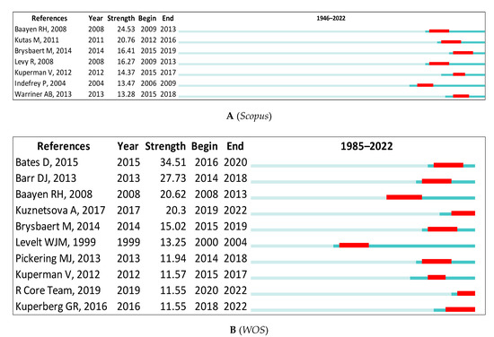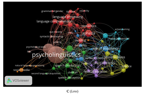 It is widely acknowledged that studies in bibliometrics and scientometrics are valuable tools for guiding the assessment of knowledge produced in the field or concept under consideration (e.g., psycholinguistics). Most knowledge databases (e.g., Scopus, WOS, and Lens) contain bibliometric indicators [46,47,48,49]. Scientometric indicators are provided by a scientometric program. This study used CiteSpace 5.8.R3 [50] and VOSviewer 1.6.18 [51]. Table 2 lists the bibliometric and scientometric indicators used in this study.