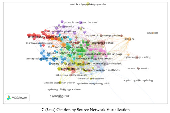 A scientometric indicator guides studies of this nature. A number of factors are taken into account (e.g., publications, citations and references, potential, etc.) as well as type indicators [43]. The most common method used in such studies is “mapping knowledge domains”, which refers to creating “an image that shows the development process and the structural relationship of scientific knowledge” and using maps that are “useful tools for tracking the frontiers of science and technology, facilitating knowledge management, and assisting scientific and technological decision-making” [44] (p. 6201). It is currently becoming more common for research of this type to include all fields of study without limiting itself to medical, health, and pure sciences [45]. This study examines psycholinguistics as a sub-field of linguistics that integrates psychology and linguistics.