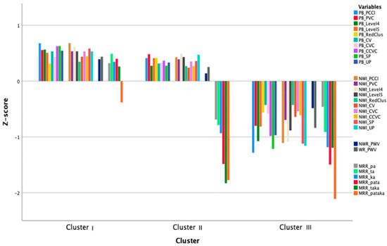 Overview of the distribution of the parameters across the clusters in z-scores.