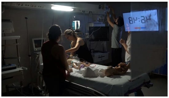 The following supporting information can be downloaded at: https://www.mdpi.com/article/10.3390/children9101503/s1, Video S1: Presentation of this new training project in our hospital, Video S2: The introductory video, similar to that of recreational escape rooms, to explain the case before entering the room.
