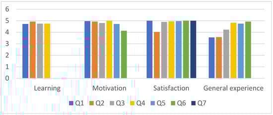 Graphic representation of satisfaction survey. Q = question (see Table 3); Maximum score: 5.