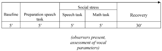 One possible physiological indicator of social performance could be vocal arousal (e.g., a “shaky” voice, talking too softly [19]). This can be analyzed by measuring the fundamental frequency (f0 [21]), which relates to the frequency of opening and closing of the vocal cords during speech sound production [22]. It can provide information about the emotional arousal of the person speaking [22]. There are two frequently used parameters, f0 mean, which is the mean of vocal arousal, and f0 range (f0 value range), which is the difference between the highest and lowest value of the f0 and indicates the variability of the voice pitch over an examined period of time (e.g., [23]). Studies suggest that f0 range increases during emotional arousal and stress [23,24,25]. Preliminary studies with adults, children, and adolescents demonstrated associations of social anxiety and some parameters of vocal arousal [20,21,26]. One of the few studies with children also reported higher average f0 and more variability in voice pitch during role play in children with SAD compared to children with Asperger’s syndrome, although neither group differed significantly from HC children in this regard [20]. However, vocal arousal has yet to be examined as a stress parameter in relation to social performance.