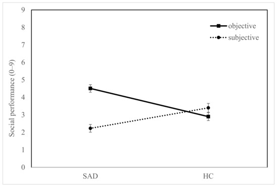 In sum, both subjective and objective ratings show a significant difference between children with and without SAD in social performance. However, objective ratings show a better performance in children with SAD, whereas children with SAD evaluated their performance as worse compared to HC children’s self-ratings.