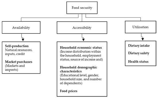 - Bashir, M.K.; Schilizzi, S. Determinants of rural household food security: A comparative analysis of African and Asian studies. J. Sci. Food Agric. 2013, 93, 1251–1258. [Google Scholar] [CrossRef]