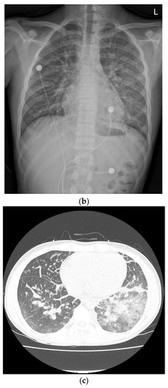 Compared with the chest radiography (a) at the time of admission, the chest radiography (b) and low-dose chest computed tomography (c) performed on the second day of hospitalization revealed pulmonary edema and cardiomegaly findings (b).