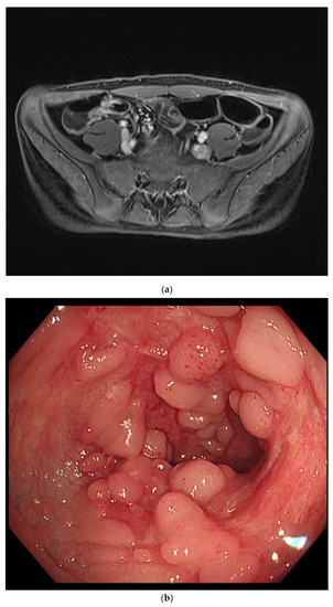 - Levine, A.; Griffiths, A.; Markowitz, J.; Wilson, D.C.; Turner, D.; Russell, R.K.; Fell, J.; Ruemmele, F.M.; Walters, T.; Sherlock, M.; et al. Pediatric modification of the Montreal classification for inflammatory bowel disease: The Paris classification. Inflamm. Bowel Dis. 2011, 17, 1314–1321. [Google Scholar] [CrossRef] [PubMed]