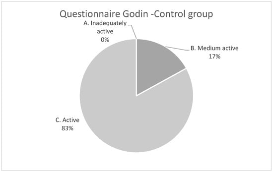The Godin Leisure-Time Exercise Questionnaire (GLTEQ), a simple, reliable, and effective tool, was used to assess physical activity [25,26]. It estimates physical activity over a typical week and is divided into three categories of intensity expressed as METs (Metabolic equivalent of task). The questionnaire score is expressed in units (strenuous > 24, moderate 14–23, mild < 14).