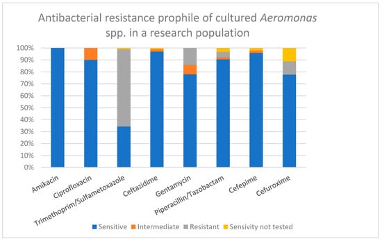 Antibacterial susceptibility testing was performed for all positive findings, and no significant resistance except intrinsic specific was detected in majority of cases. However, considering the possible antibiotic resistance features of Aeromonas spp. [12,24,25], it would also be reasonable to amend the antimicrobial susceptibility testing protocol for appropriate antibacterial therapy selection in severe cases of infection.