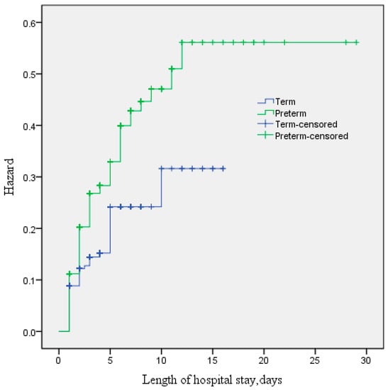 Kaplan–Meier curve to show the difference between preterm and full-term infants.