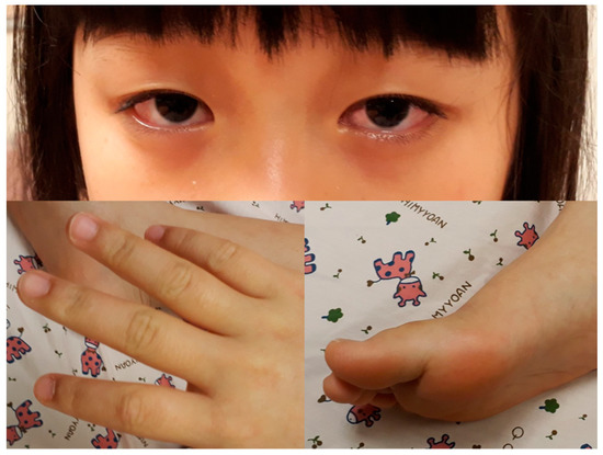 - Park, W.Y.; Lee, S.Y.; Kim, G.B.; Song, M.K.; Kwon, H.W.; Bae, E.J.; Choi, E.H.; Park, J.D. Clinical aspects for differential diagnosis of Kawasaki disease shock syndrome: A case control study. BMC Pediatr. 2021, 21, 25. [Google Scholar] [CrossRef]
