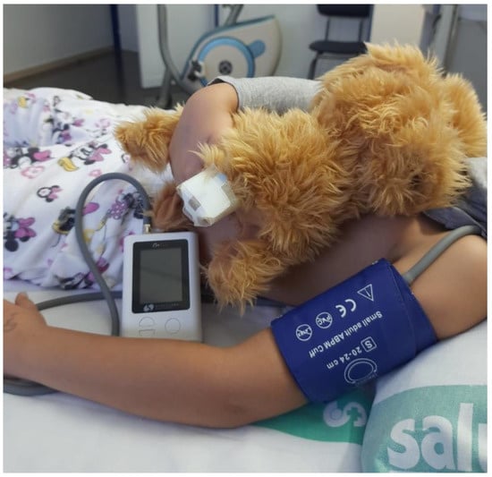 Validated pediatric BP monitoring equipment with sleeves appropriate to the size of the child’s arm was used (the size of the cuff to be used is calculated by the average distance between the acromion and the radial head). The device was placed on the non-dominant arm and parents were instructed on how to handle the device (how to turn it off in case of excessive pressure, need to keep the arm still during measurements) and everything related to the test was explained.