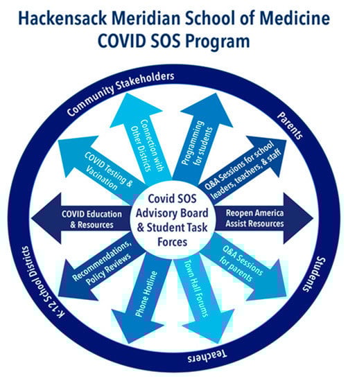 At the Hackensack Meridian School of Medicine (HMSOM), we collaborated with our local K-12 school districts and implemented the COVID Support Our Schools (SOS) initiative. Pre-existing well-established community partnerships were essential for rapidly identifying and responding to the needs of the community during this health crisis. This highlights the value for medical schools to develop strong community partnerships, which proved to be instrumental in a healthcare crisis.