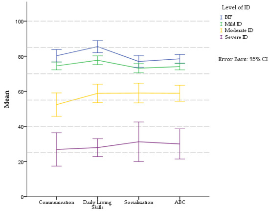 3.2. Profile of Adaptive Behavior for Each Level of ID