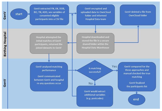 We address this gap with the Generation Victoria (GenV) cohort, a statewide population-based birth cohort now open to all newborn babies and their mothers over two years in all 58 birthing hospitals in the state of Victoria (population 6.5 million), Australia [19]. Consent includes permission to bring into GenV information and samples that services already collect in clinical practice. In a one-year GenV sub-cohort from a single birthing hospital, this pilot study aimed to (1) compare different approaches to improve patients-participants matching accuracy after standardization and validation, and (2) recommend an approach for statewide scale up.
