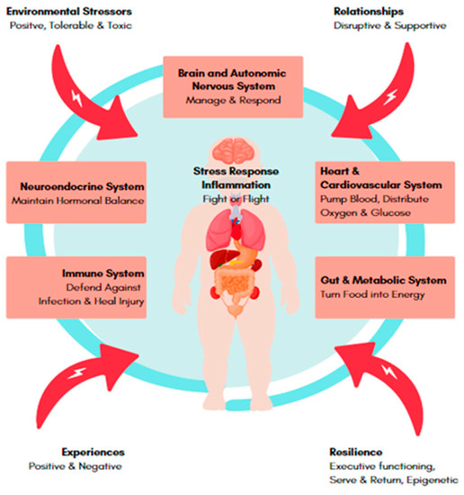Resilience is the ability to flexibly adapt to changing conditions and to recalibrate in the context of challenge or adverse experiences [40]. Resilience develops over time as gene expression and epigenetics are shaped by experiences, especially during sensitive stages of development. The individual traits that allow adaptive or maladaptive behaviors depend on the individual’s neurological capacity [41,42,43]. Executive function, also referred to as the brain’s air traffic control system, is strongly influenced by key interactions at an early age [44,45]. Children exposed to early life stress therefore could be at increased risk, as recent research indicates that executive function abilities, rather than intellect, predict resilient school and peer functioning [46,47].