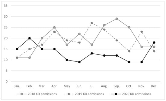 Number of Kawasaki Disease Admissions per Month From 2018 to 2020.