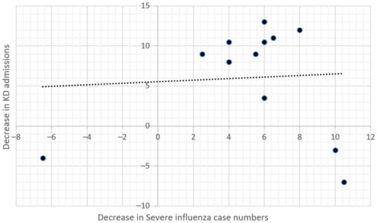 Correlation Between the Decrease in KD Admissions and Severe Influenza Numbers in 2020.