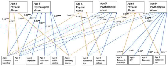 | Age 3 Psychological Abuse | Age 5 Psychological Abuse | Age 9 Psychological Abuse | ||||||||