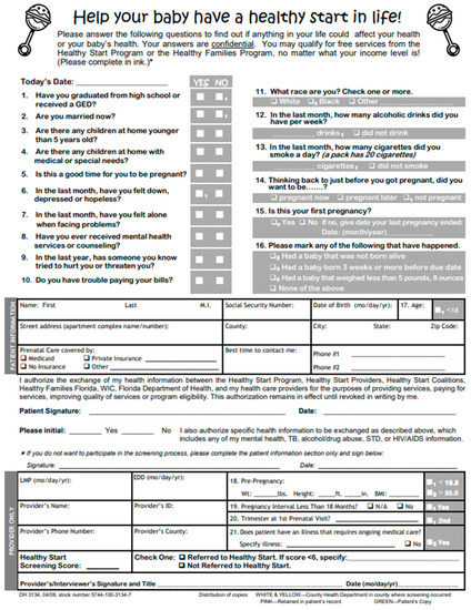 - Florida Department of Health. Chapter 3: Healthy Start Risk Screening. 2007. Available online: http://www.floridahealth.gov/programs-and-services/childrens-health/healthy-start/chapter-3-healthy-start-risk-screening-2009.pdf (accessed on 30 January 2022).
