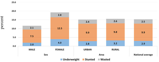 Malnutrition rates in children under 5 years by sex and geographical location (Iraq, MICS 6-2018).