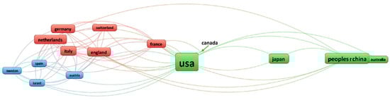 Three different clusters of international collaborations could be identified. Cluster 1 comprised the USA, China, Japan, Canada, and Australia; Cluster 2 included England, France, Germany, Italy, the Netherlands, and Switzerland; whereas Cluster 3 involved Austria, Israel, Spain, and Sweden (Figure 2).