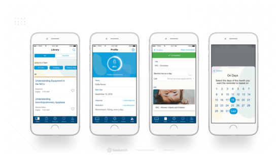 When considering potential improvements for the NICU-to-home transition, web-based and mobile applications (apps) remain a largely underutilized potential solution. The use of websites and mobile apps for health management and education have risen in popularity, especially with the increased need for healthcare delivery through telemedicine in the past few years [10]. In fact, many parents already utilize the internet and mobile apps to supplement and support their role in development and education as new parents [11,12]. Unfortunately, many of the currently available internet websites and mobile apps may be unreliable in terms of the quality of information they provide [13,14]. In a systematic app review performed by Richardson et al. in 2019, less than half of the available apps targeting NICU parents were considered acceptable educational material [14]. Mobile applications for facilitating the transition from the NICU to home have already proven to be a promising strategy for improving parental preparation for discharge [15], yet the availability of apps specifically created with consideration for the unique desires and needs of caregivers and providers at safety-net centers remains limited.