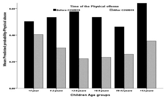 The yielded analysis model (Table 4) showed that the period during which the COVID-19 pandemic spread across the globe was associated with significantly lower odds of child physical maltreatment; maltreated children were, on average, significantly less likely (47.7% less) to be physically maltreated during pandemic time compared to the non-pandemic period. Children who were confirmed for maltreatment at the point of contact with medical professionals were, in fact, significantly more (2.90 times more) likely to be physically maltreated than others whose physical symptoms showed probable markers of maltreatment (p < 0.001). Additionally, brothers were found to be significantly more likely to physically maltreated children (4.71 times more) on average compared to other offending persons (p < 0.001).