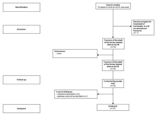 - Winquist, R.A.; Hansen, S.T., Jr.; Clawson, D.K. Closed intramedullary nailing of femoral fractures. A report of five hundred and twenty cases. J. Bone Joint Surg. Am. 1984, 66, 529–539. [Google Scholar] [CrossRef]