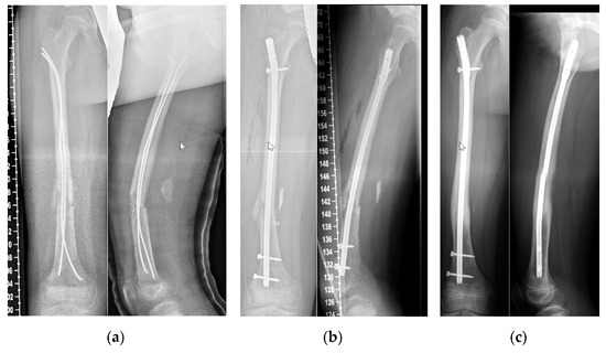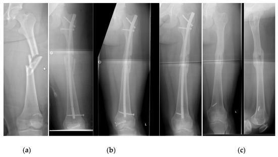 - Reynolds, R.A.K.; Legakis, J.E.; Thomas, R.; Slongo, T.F.; Hunter, J.B.; Clavert, J.-M. Intramedullary nails for pediatric diaphyseal femur fractures in older, heavier children: Early results. J. Child. Orthop. 2012, 6, 181–188. [Google Scholar] [CrossRef] [PubMed] [Green Version]