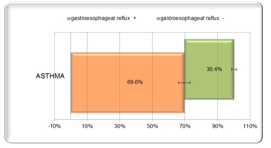 Asthma is a strong reason for the evaluation of the presence of gastroesophageal reflux by using continuous esophageal pH-metry for 24 h, especially when there is a weak response to asthma therapy. The bronchial spasm triggered and maintained by aspirating the refluxed acid remains the most believable explanation for this relationship and association. The statistical test results demonstrated that the presence of asthma increases the chances of GER by 2.86. Proper therapy of GER resolves or at least help in the treatment of asthma.