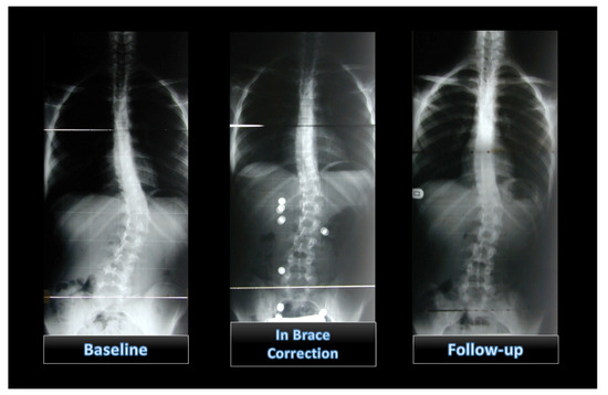 - Aulisa, A.G.; Guzzanti, V.; Falciglia, F.; Giordano, M.; Galli, M.; Aulisa, L. Brace treatment of idiopathic scoliosis is effective for a curve over 40 degrees, but is the evaluation of Cobb angle the only parameter for the indication of treatment? Eur. J. Phys. Rehabil. Med. 2018, 55, 231–240. [Google Scholar] [CrossRef]