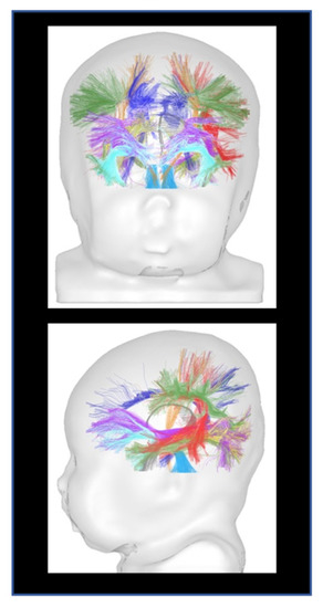 Tractography of WM bundles in a 1-month-old infant. The trajectory of the main WM bundles (projections, callosal tracts, limbic, and associative bundles) can be generated. Adapted from ref. [36].