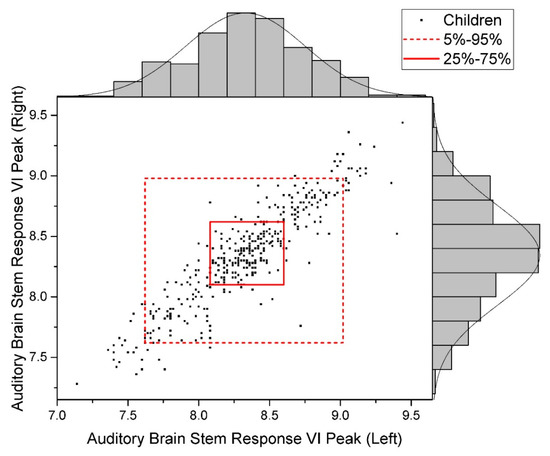 Data Distribution of Auditory Brain Stem Response, VI Peak (Normal).