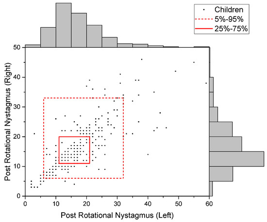 Post-rotational nystagmus assessment is a well-described, validated procedure in the literature [33,34]. The function of the semicircular canals of the vestibular apparatus was assessed by recording the post-rotational nystagmus (PRN) with the Rehacor-T psychophysiological telemetric system devised by the MEDICOM-MTD Company (Taganrog, Russia) in Encephalan-MPA software system.