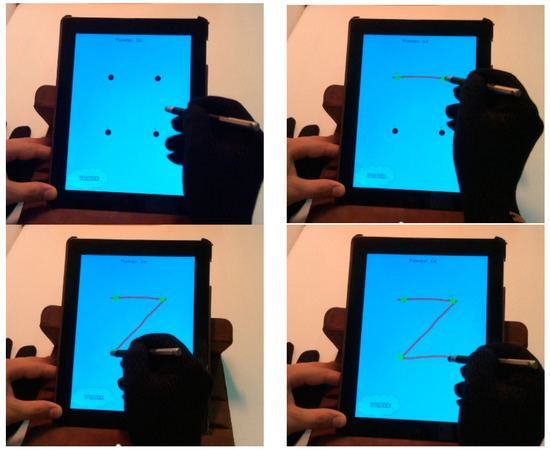 A touchscreen glove and a tablet pen are required to interact with the application. On the one hand, the glove is necessary because tablets have capacitive screens that work by detecting electrical variations on their surface. Since humans are electrically conductive, they can interact with tablets by direct skin contact, and since prostheses do not have this conductive property, it is necessary for children to wear touchscreen gloves. These gloves are knitted with conductive materials that transmit electricity from one end of the glove to the other; they are usually silver-plated nylon threads (hence the name of the application: SilverTouch). The only requirement is that some part of the skin (wrist, forearm, or elbow) meets the glove. On the other hand, the tablet pen is needed for one of the games, as an element for rehabilitative therapy. Details on its use in such therapy will be given in the description of this game. It should be noted that both objects are for sale in any online or physical electronics store, at an affordable price, allowing one of the main goals of the project to be fulfilled: supporting training at home.