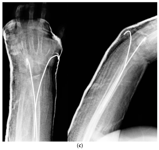 - Mani, G.V.; Hui, P.W.; Cheng, J.C. Translation of the Radius as a Predictor of Outcome in Distal Radial Fractures of Children. J. Bone Jt. Surg. Br. 1993, 75, 808–811. [Google Scholar] [CrossRef]